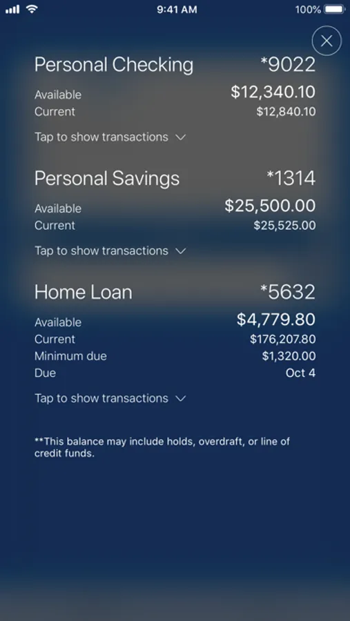 With the tap of your finger, you have the ability to check balances, view account activity and history, pay bills, deposit checks, and make transfers. Access your account anytime, anywhere.