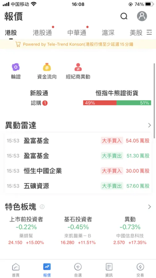 除了滬深港三地的行情資料外,由道鐘斯、華富財經、騰訊網、港股通等提供的每日超過1500條的市場新聞、個股資訊,幫助投資者更快更全地捕捉市場訊息