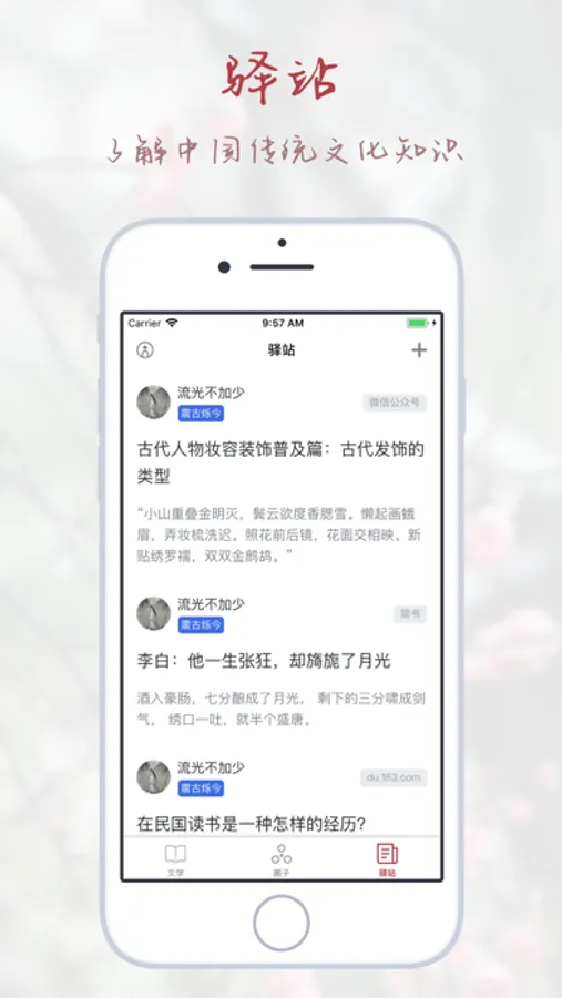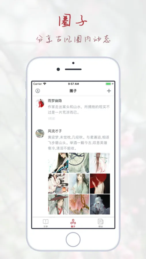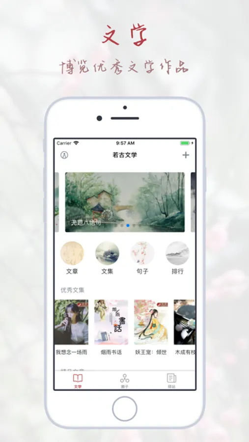 若古 App 现已重整为三大部分:文学、圈子、驿站。