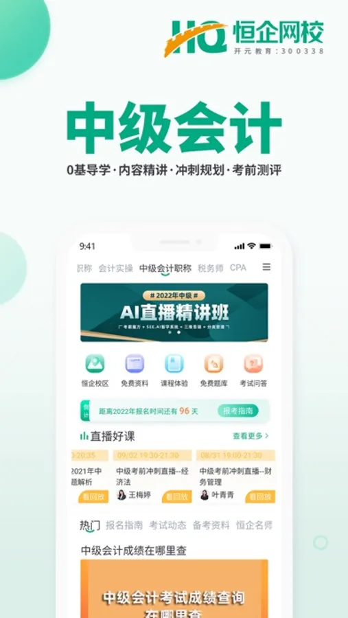 恒企网校专注财经类职业教育超过17年,涵盖:职称考试/技能实操/学历辅导等完善的课程体系,为学员提供个性化的终身学习成长方案