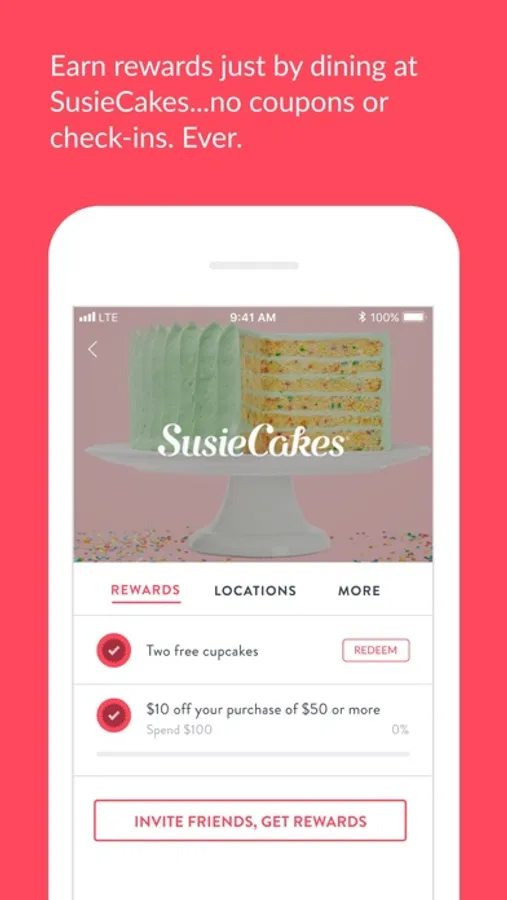 SusieCakes is an all-American bakery offering classic desserts such as cakes, cookies, cupcakes, pies, and puddings – made entirely from scratch using simple, natural ingredients. With our app you can effortlessly earn rewards at SusieCakes! Just sign up, register a credit or debit card, and earn reward progress automatically whenever you shop. But that's not all: get special offers, VIP experiences and birthday gifts just for being you! No hoops to jump through. It’s like magic.