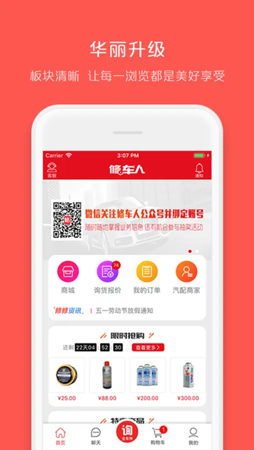 修车人汽修站版是修车人网面向维修厂用户,为解决其工作中高采购成本、质量参差不齐、过程繁琐等实际问题而上线的移动端软件。作为修理厂老板的掌中宝,正品配件、一站式购物体验、极速直达,真正让汽配采购过程省时、省心、省力、省钱!