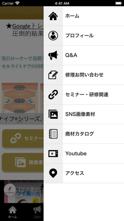 話題の痩身機「ハイパーナイフ」や雑誌でも取り上げられた注目の新感覚サプリメント「水溶性ケイ素DMK」などを扱う美容健康関連メーカー『株式会社ワム』のアプリです。