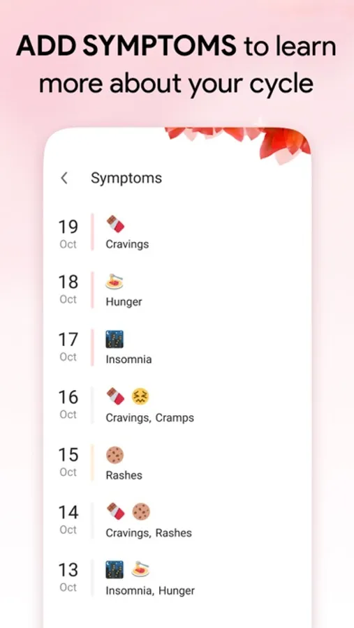 - daily detail logging for moods, symptoms, temperature, weight, ovulation, flow, intercourse, medication, cervical observation