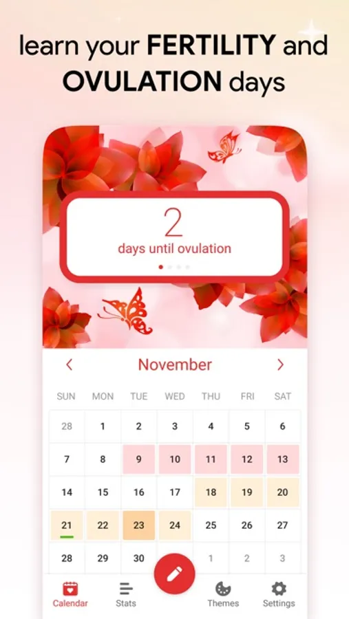 - period, ovulation, fertile & pill notification reminders