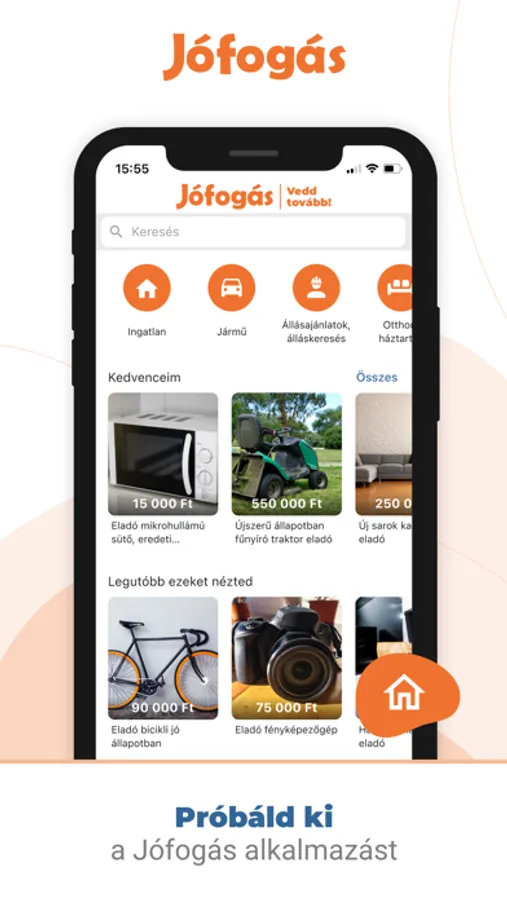 Adásvétel gyorsan és egyszerűen mobilról is: a Jófogás alkalmazásával szinte bárhol és bármikor meghirdetheted az eladásra szánt termékeidet, vagy akár vásárolhatsz valamit, amire épp szükséged van. Böngéssz a több, mint egymillió új, vagy használt termék között!