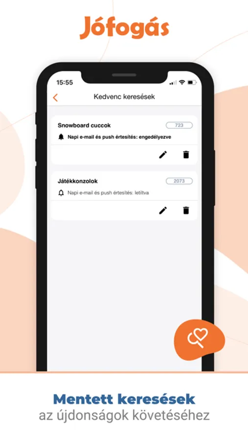 -Kedvenc hirdetések és keresések mentése