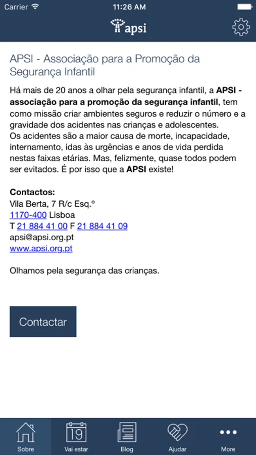 Esta aplicação é da responsabilidade da APSI - Associação para a Promoção da Segurança Infantil.