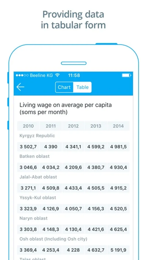 The main objective of the application about the statistics of the Kyrgyz Republic is to ensure the interaction between producers and users of statistical data in order to inform about the user needs, ideas, advices and feedbacks.