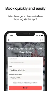 In this travel app, you can manage bookings, view hotel details, and use a Mobile Key for room access. Includes booking management, destination discovery, and member benefits tracking.