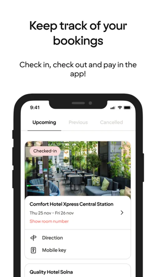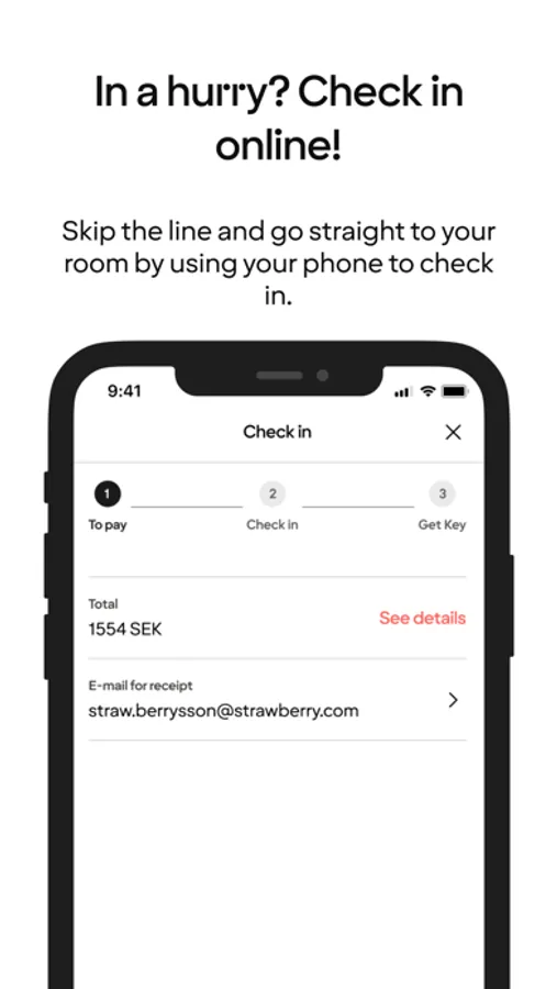 - Check in and out seamlessly with a few taps, without having to queue up at the hotel reception upon arrival.