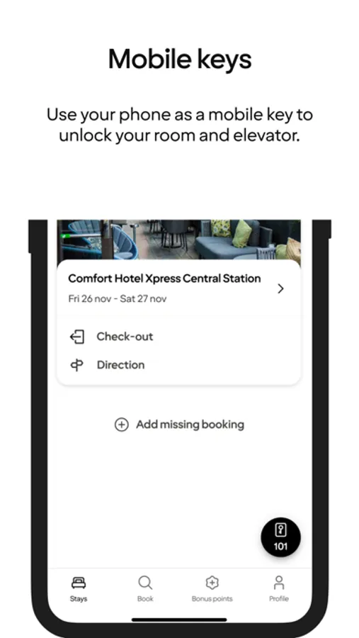 - Use your phone as a mobile key to unlock the door to your hotel room and the elevator.