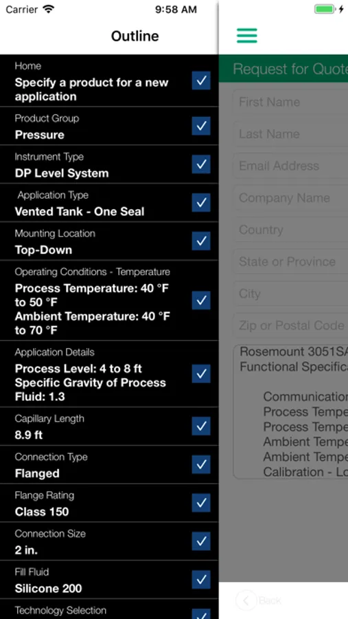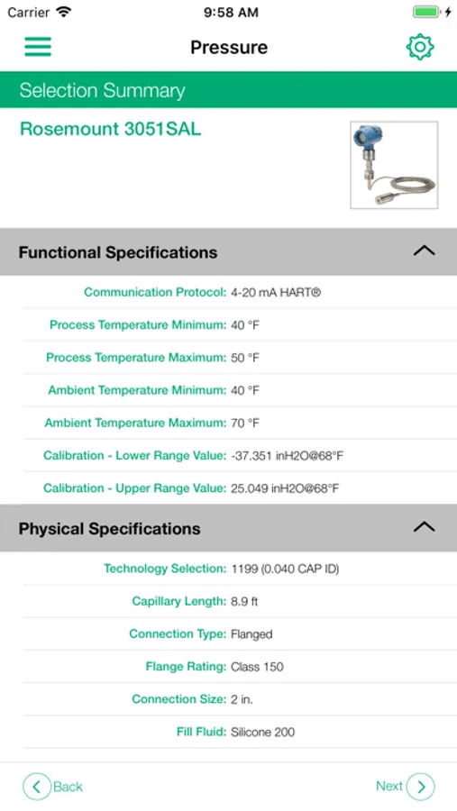 Instrument Advisor is a mobile application which greatly increases the speed and efficiency of product specification. Built with integrated help text and a unique filtering architecture, the app ensures that products will meet basic specifications before going through the work of building a full model number. The app produces a detailed report that specifies the base model of the product and other information needed to start the specification process. Instrument Advisor also comes with a ‘Take-A-Picture’ feature which allows the user to take picture of existing product for quick replacements.