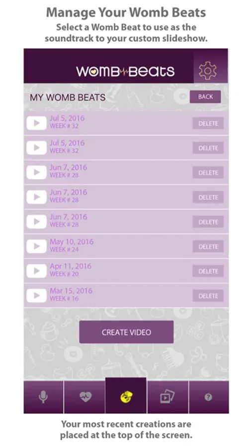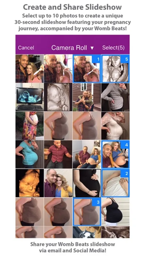 Choose up to 10 of your favorite pregnancy-related photos, then save/share your pregnancy journey in a 30-second slideshow like never before, featuring your Womb Beats!