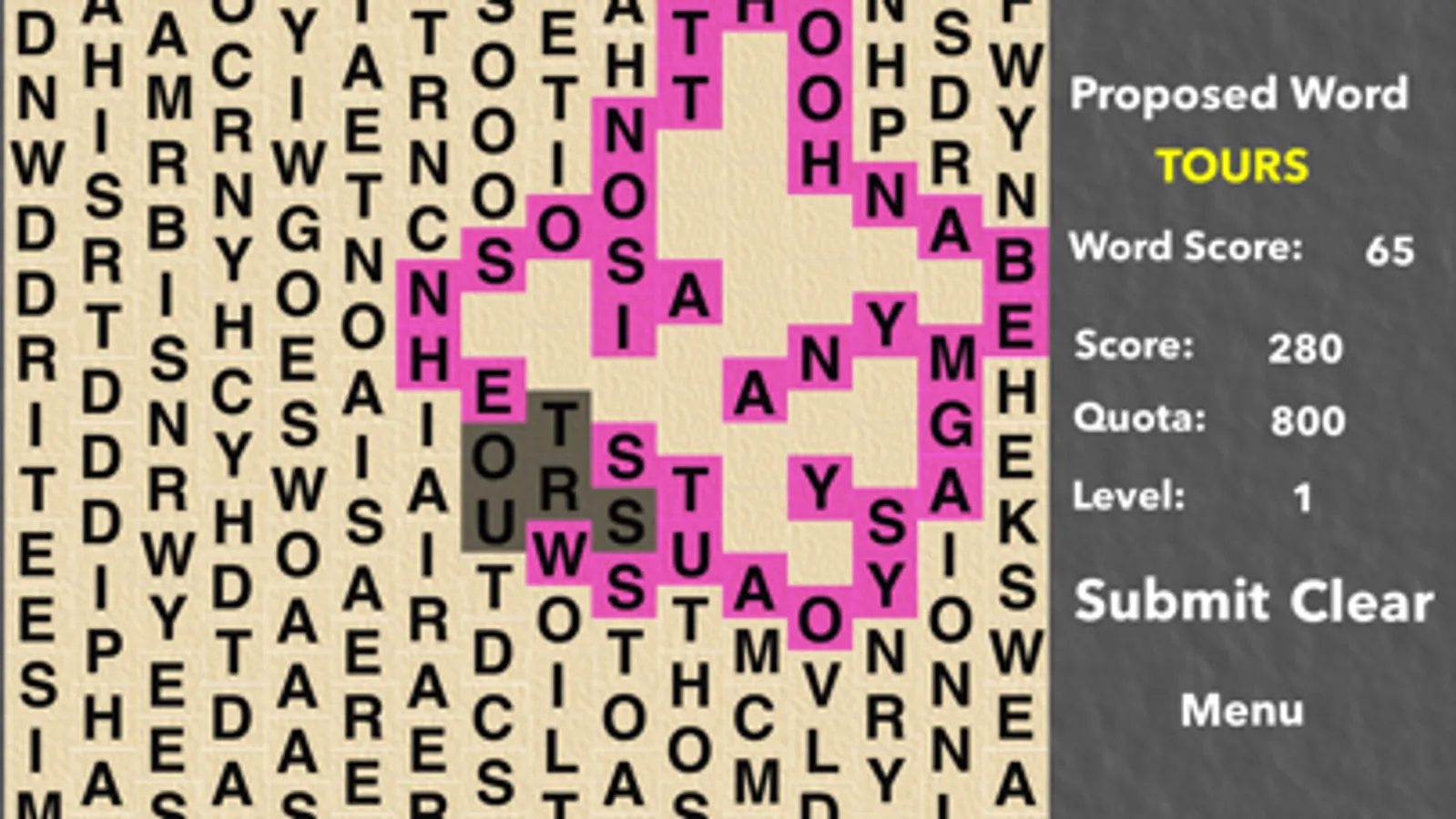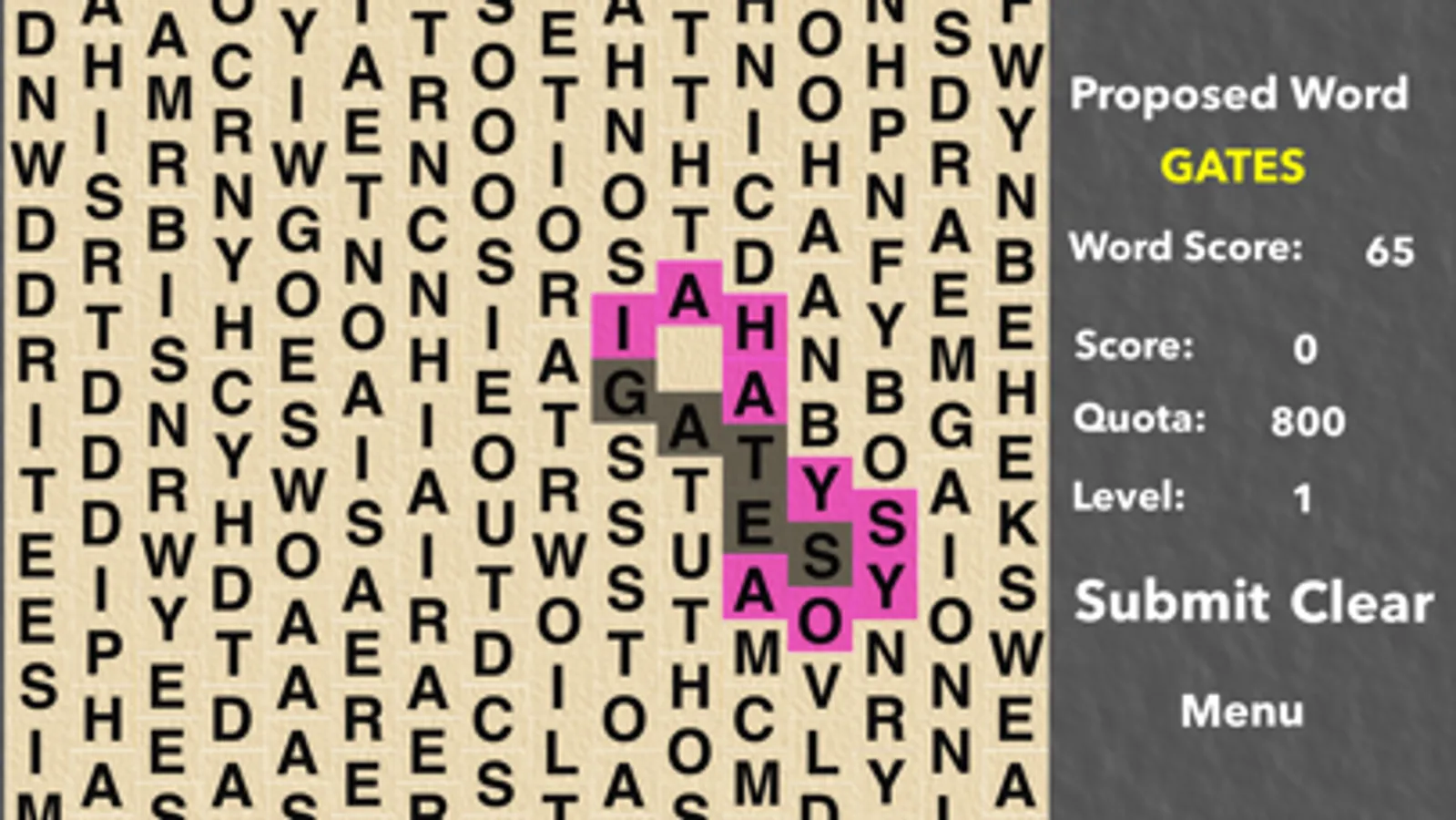 There are two ways to play LetterMiner. See how high a score you can get on a single board. Or play a multiple level mode where you have to meet ever increasing quotas and deal with supply and demand for the letters you mine. Mine too much of a letter, and its value drops.
