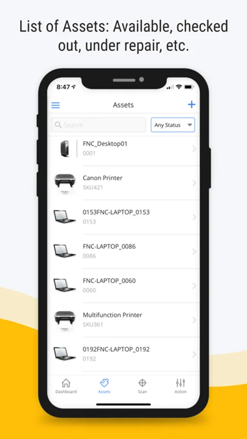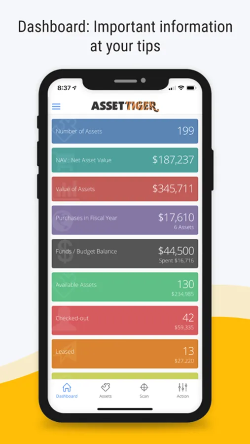 With AssetTiger your asset information is available wherever you are. As long as you can connect to the internet, you can connect to your database either through AssetTiger website or with our AssetTiger smartphone app which turns your phone into both - a barcode scanner and a mobile inventory. Use AssetTiger to check equipment out and check it back in. It couldn't be easier. And your company will never outgrow AssetTiger because use of the application is limitless. Track unlimited assets for unlimited users. Create unlimited alerts and use AssetTiger to create as many reports as you like. Streamline your business and stay on top of your belongings with one handy customization application you can tailor to your specific needs.