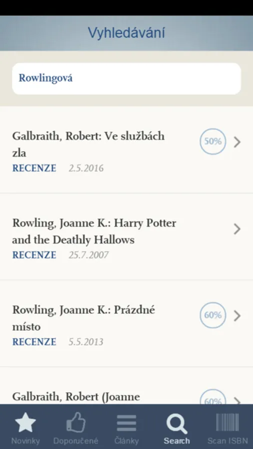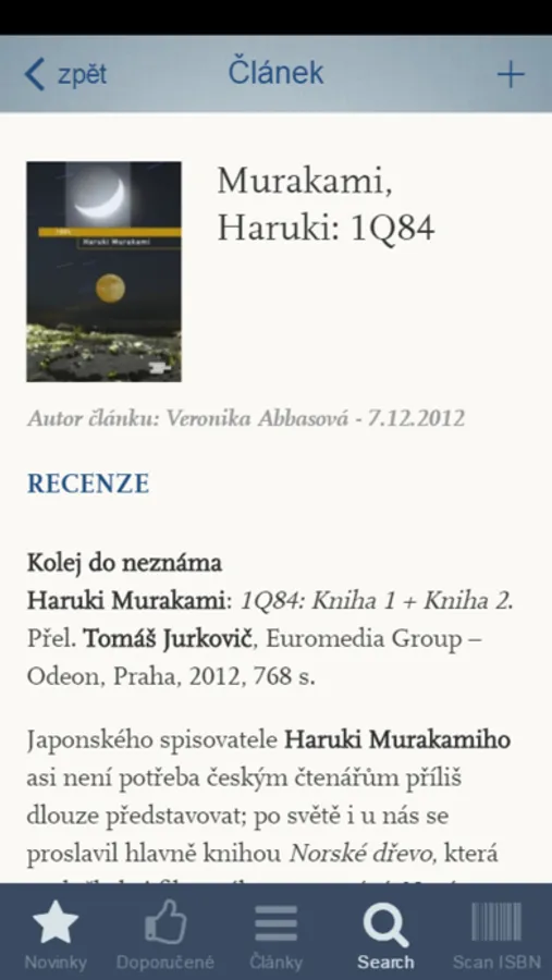 - vyhledávat informace k určité knize, a to zadáním hledaného slova (autor, titul nebo předmětové slovo), nebo pomocí prakticé a zároveň zábavné funkce: stačí oscanovat (ofotit) ISBN z knižní obálky