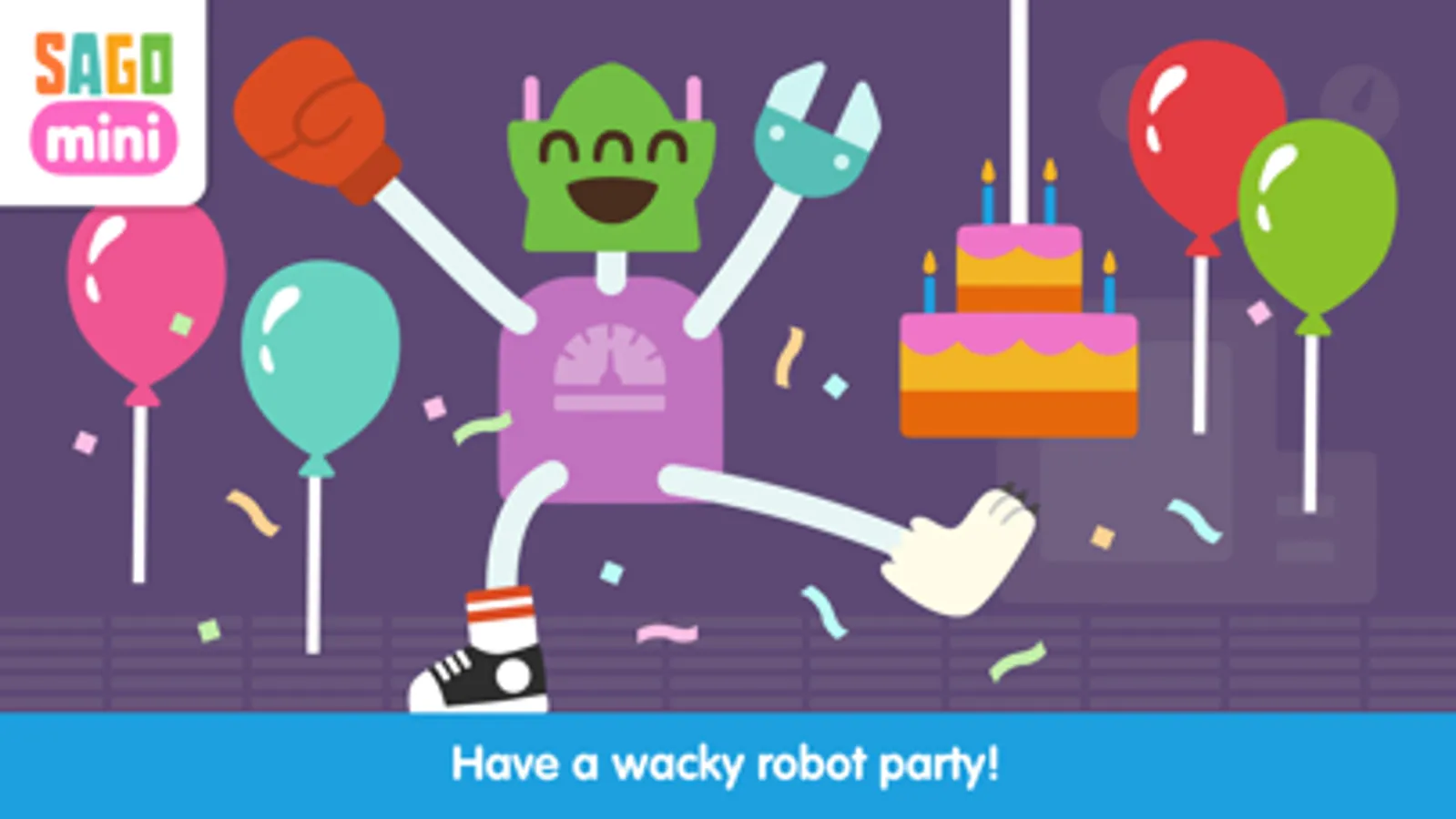 Let’s have a robot party! Build your own cupcake-making robot. Mix and match funny robot parts to invent super silly combinations. Does your robot have two heads or wear bunny slippers? Power up your robot and it’s time to play! Make tons of cupcakes, dance to robot music and celebrate with balloons!