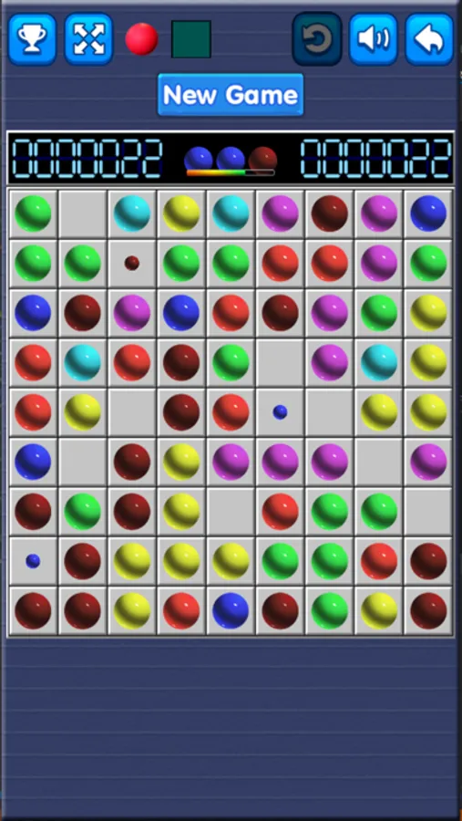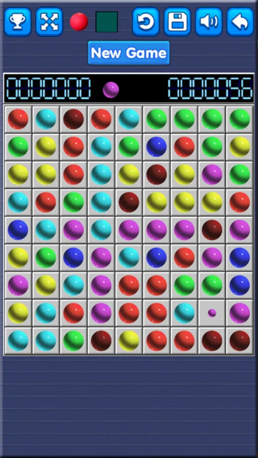 The game takes place on a square field of 9 × 9 cells. Each turn, the computer first puts three balls of random colors into random cells. Then the player makes a move when he can move any ball to another free cell, but there must be a path from free cells between the starting and ending cells. If after moving it turns out that five balls of the same color are collected in a horizontal, vertical and diagonal line, then all such balls (of which there may be more than 5) disappear and the player is given the opportunity to make another movement of the ball. The game continues until the entire field is filled with balls and the player can not make a move.
