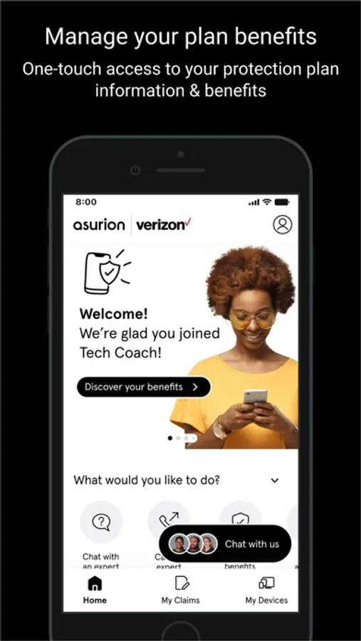 The Tech Coach app gives you instant, always-on access to a Tech Coach expert who can help you quickly solve most device issues. Plus, enjoy access to digital tools, manage repairs, and even file a claim with Asurion® straight from the app.
