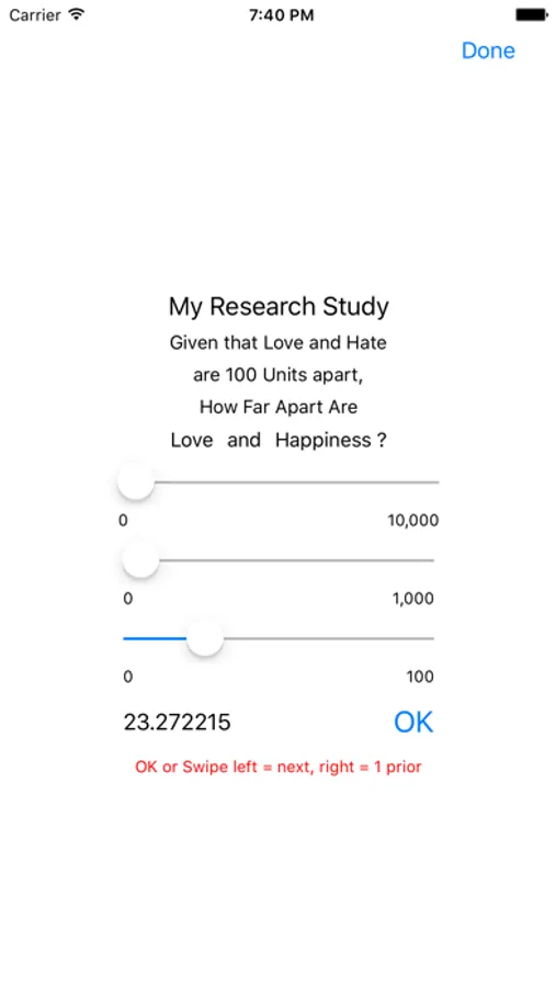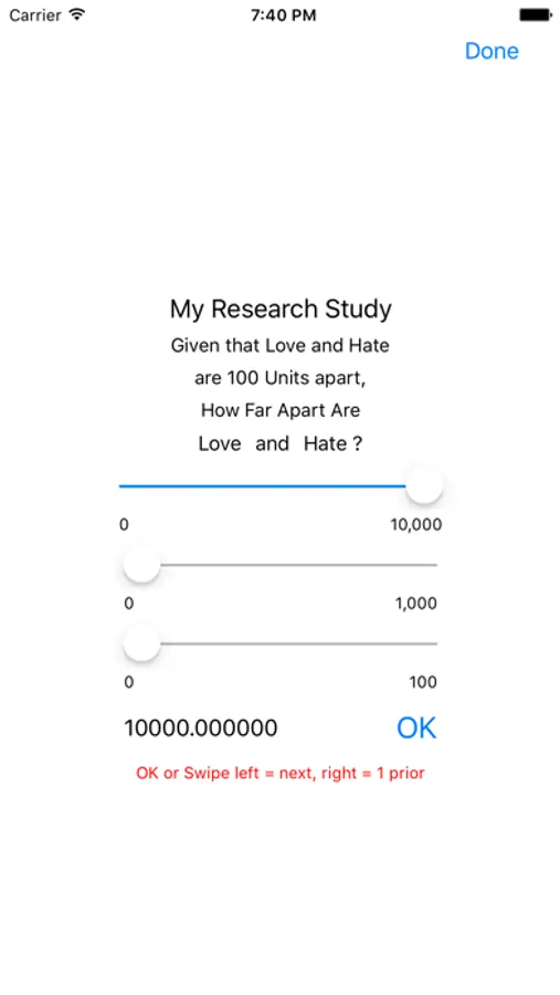This great App allows the social scientist to conduct surveys that all users of the app will see. The users fill out these surveys by reporting the differences (or distances) between a list of concepts. The user reports the distance of each concept to each other concept.
