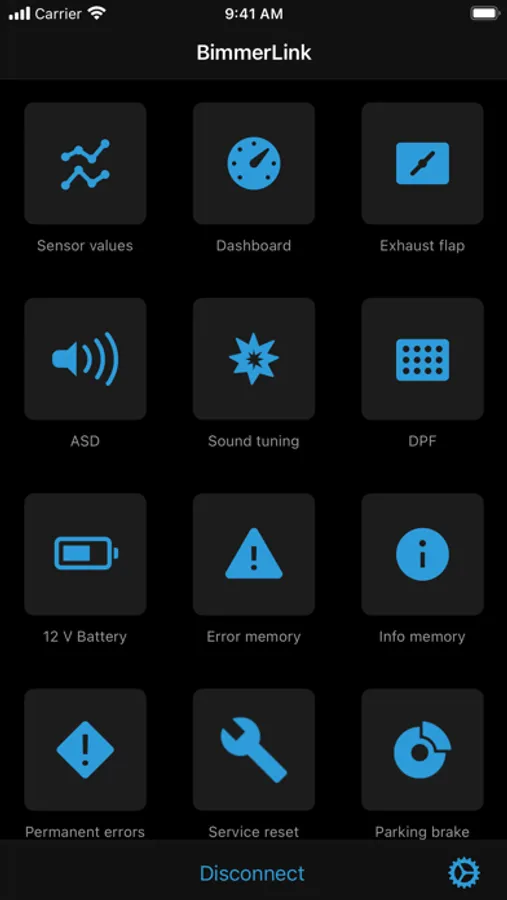 BimmerLink is the direct link to your BMW or MINI. Using one of the supported OBD adapters you can read trouble codes or display sensor values in realtime, check the current state of the DPF in your car or register a new battery after replacement. BimmerLink even allows you to remotely control the exhaust flap or mute the Active Sound Design in your car.