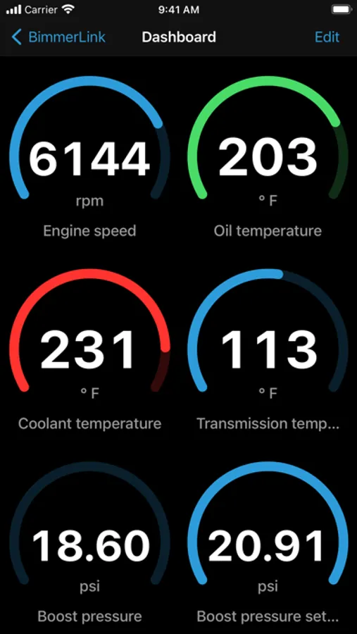 BimmerLink provides a big selection of values like oil temperature or boost pressure. Keep an eye on all the important parameters of your car with a personalized dashboard.
