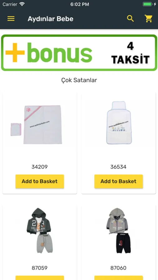 Tüm ürün çeşitlerimizi görebilir, sepetinize ekleyebilirsiniz.