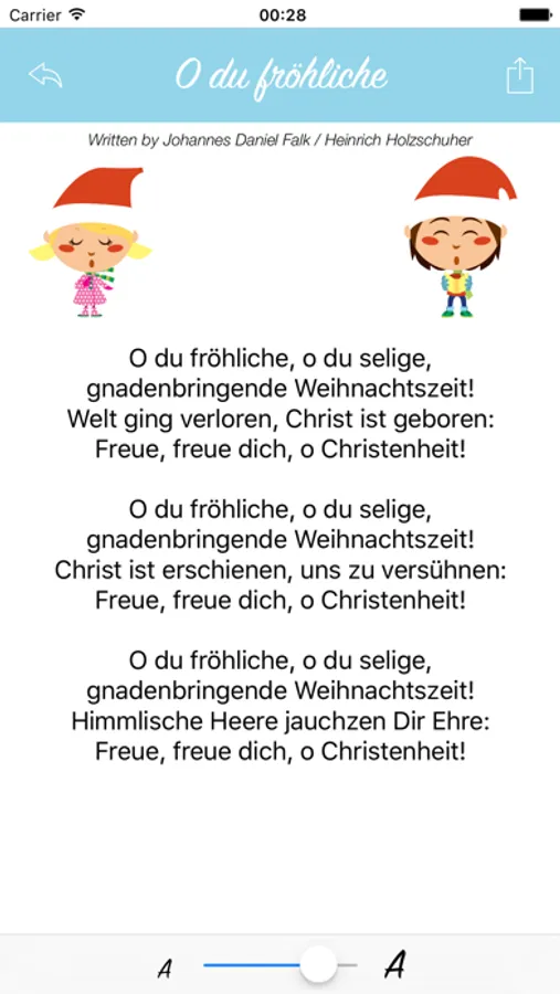 Bereite dich mit dieser schönen und einfachen Liedtext-App auf die Musizierstunde am Heiligabend vor.