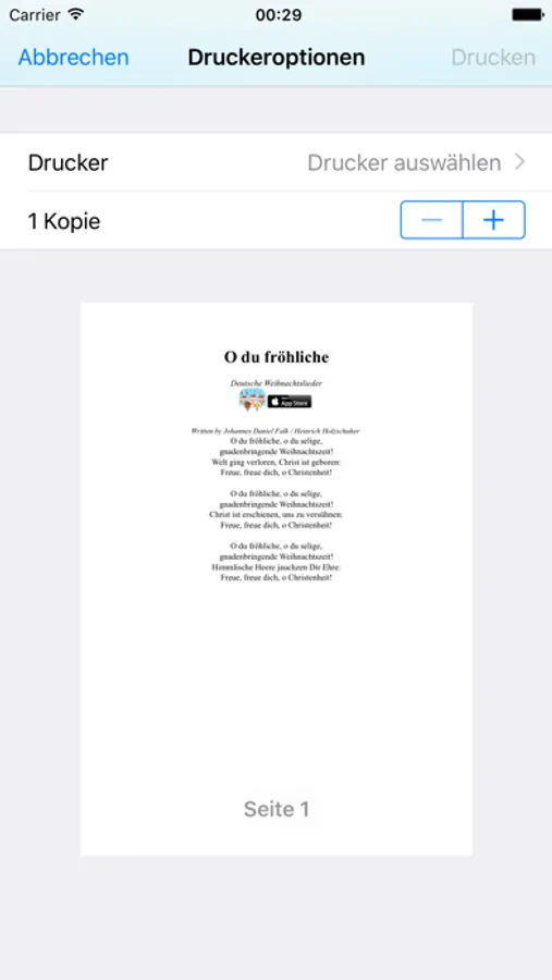 - Drucke Liedtexte per WLAN mit AirPrint aus