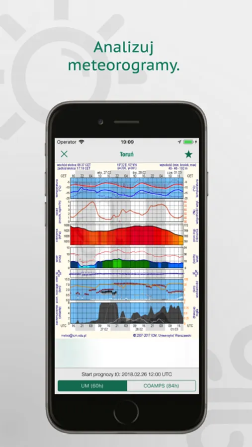 - Aktualną prognozę pogody wyliczoną na podstawie modeli UM i COAMPS.