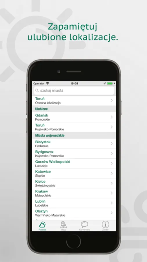 - Zapamiętywanie ulubionych lokalizacji.