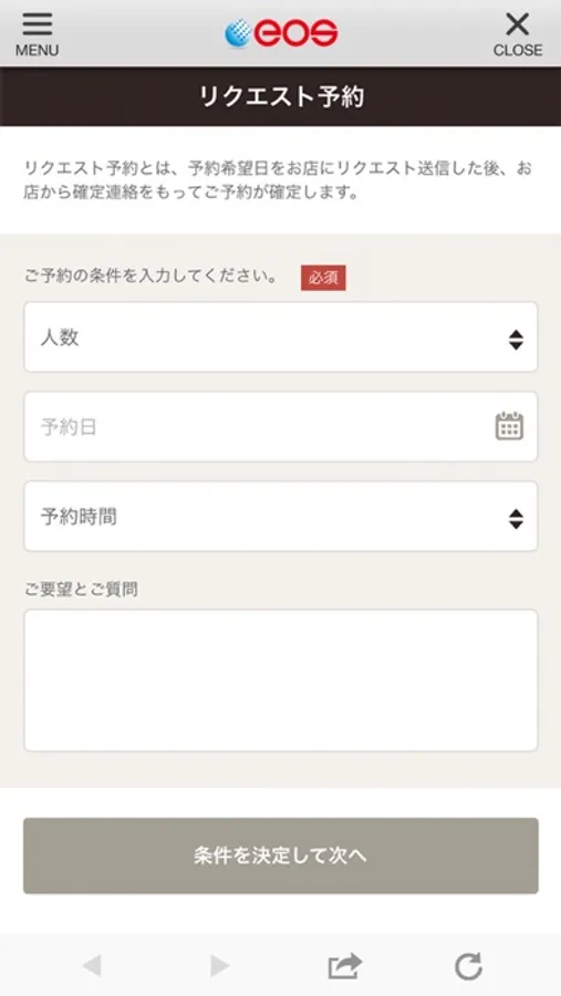 希望のメニュー・日時を指定して送信するだけで予約を依頼できます。