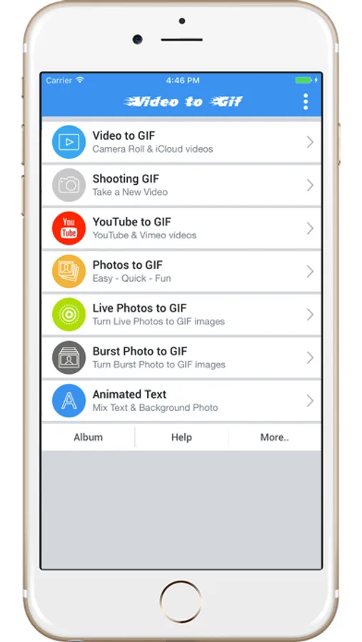 - Album : share the GIF image with friends via iMessages, Facebook, Twitter, Instagram, Email, Dropbox...