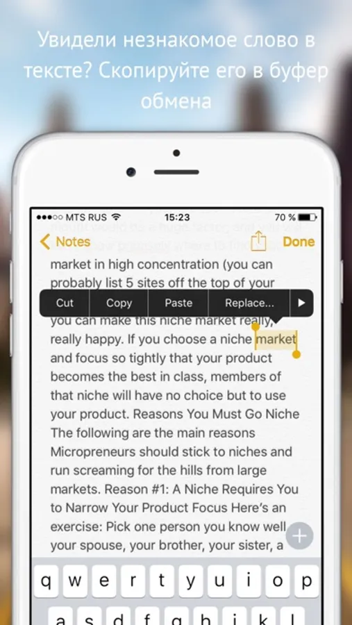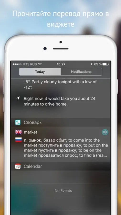 Англо-русский словарь с виджетом для Центра Уведомлений. Виджет переводит текст из буфера обмена - скопируйте незнакомое слово из любого приложения и получите перевод, никуда не переключаясь. Простые слова умеет переводить оффлайн.