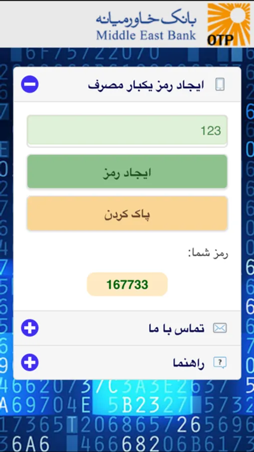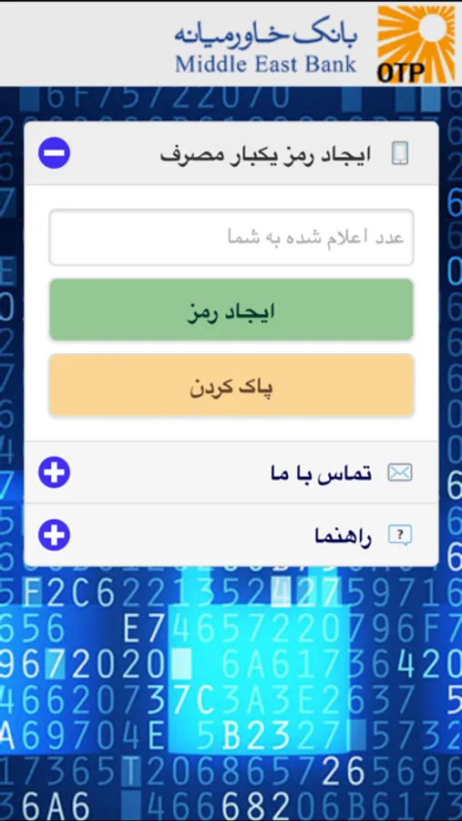 This application is provided by Middle East Bank of Iran which could be used to elevates our Internet Banking users's security in financial transactions.