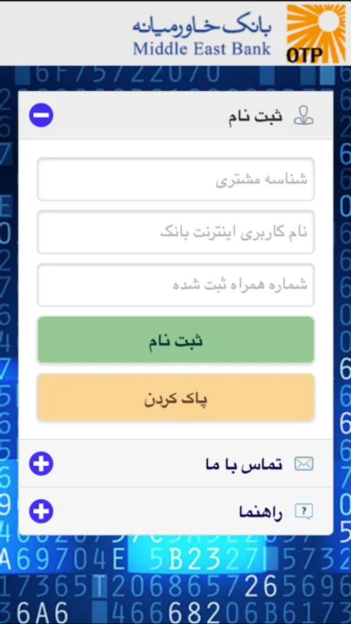 In the registration process users should enter cellphone and other required fileds and the system authorize specific customers. Please note that before using this applicaiton, you should marked as mobile OTP (One Time Password) users in our system.