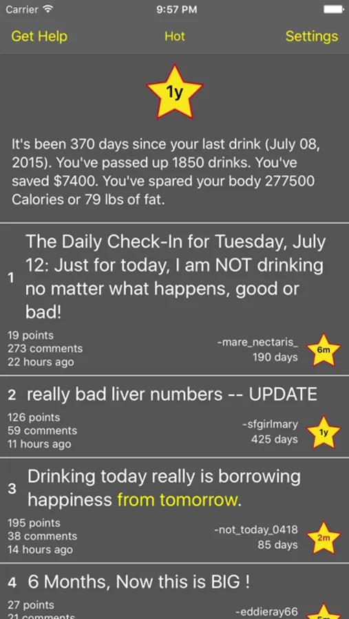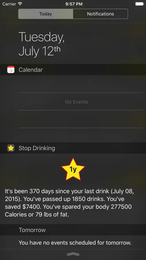 Stop Drinking Today is a great tool to help you put down the sauce. It reminds you how far you have come since your last. Quickly see how many drinks you've skipped, how much money you've saved, and how many calories you've avoided, and more.
