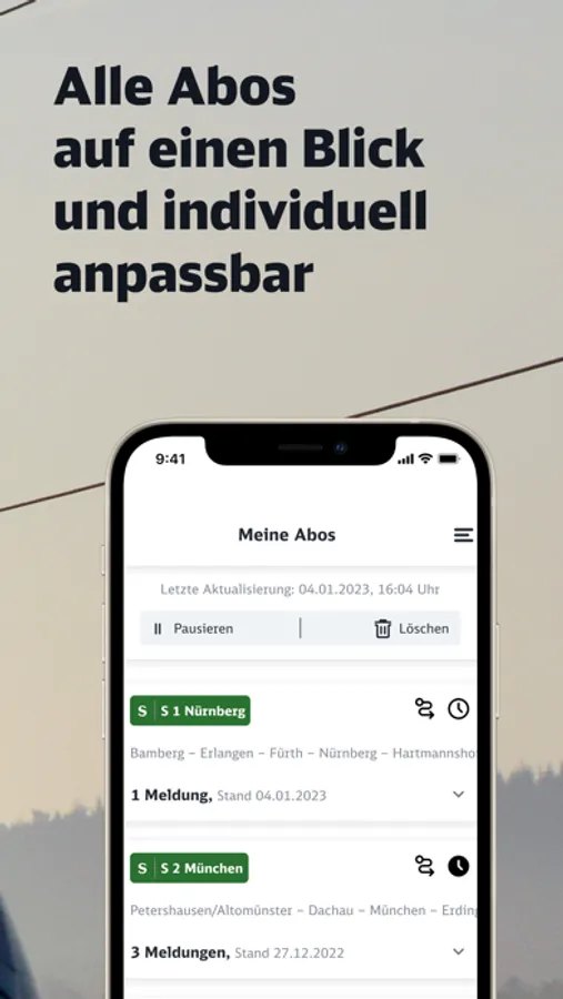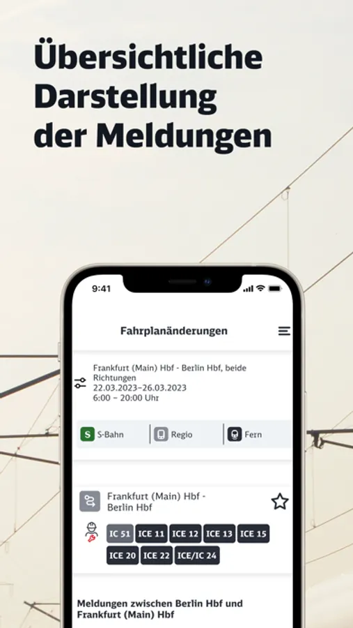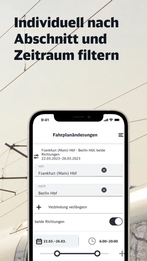 Mit der App „DB Bauarbeiten“ werden Sie zu baubedingten Fahrplanänderungen von Zügen der Deutschen Bahn informiert. Wenn Sie einzelne Linien bzw. Strecken abonnieren, erhalten Sie automatisch eine Information auf Ihrem Smartphone, sobald neue Meldungen vorliegen oder Meldungen aktualisiert wurden.