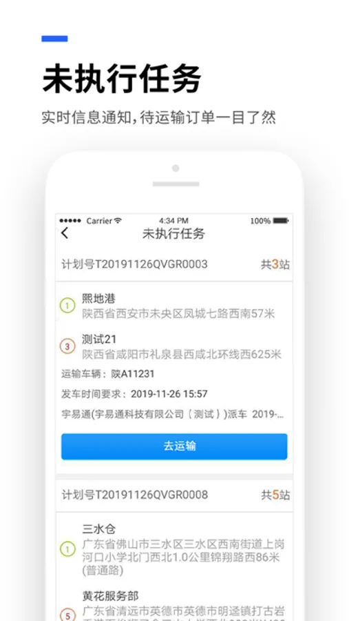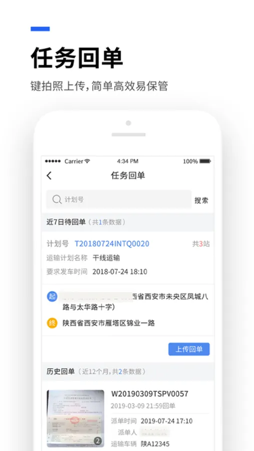 司机登陆app接收派车任务,上报运途事件和运输节点状态,信息反馈更便捷,实时有据可依,物流过程更加透明高效。