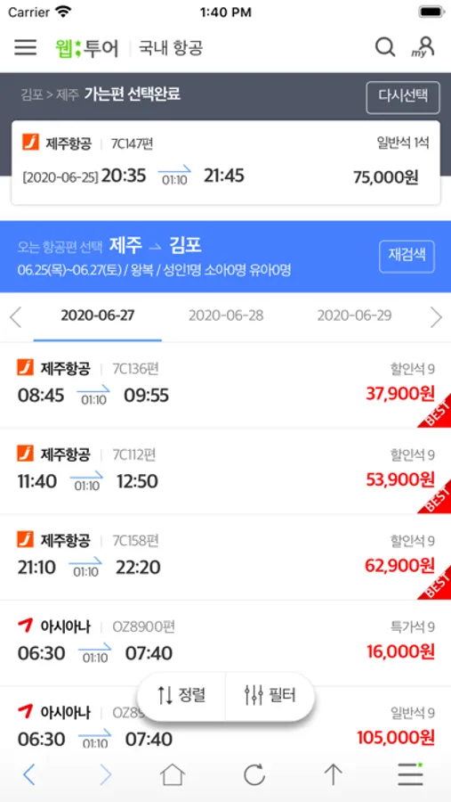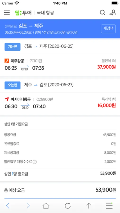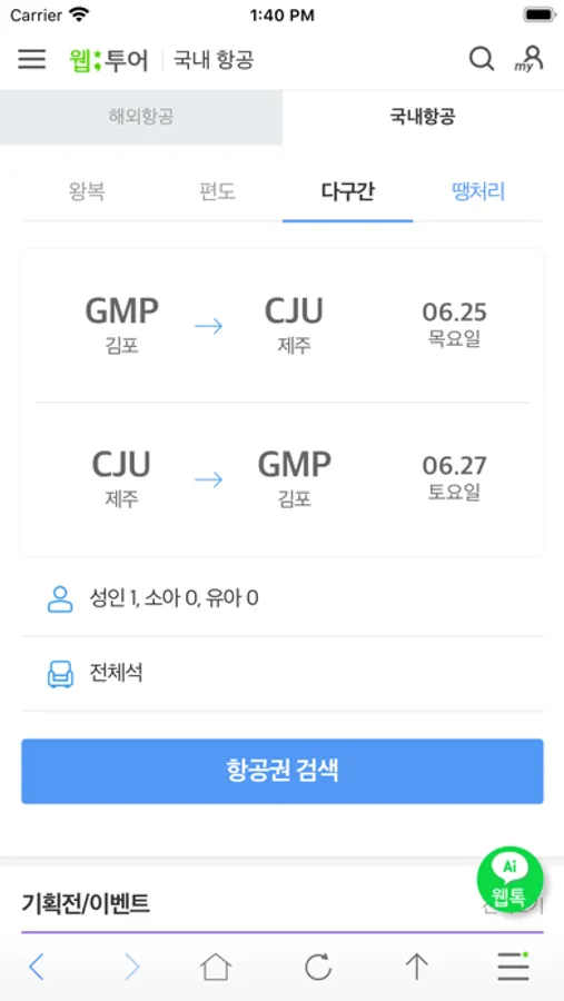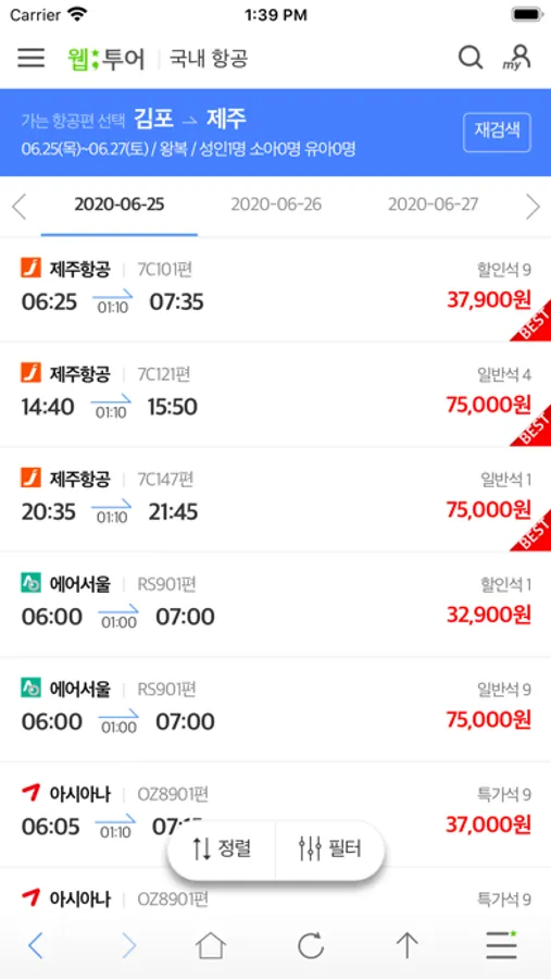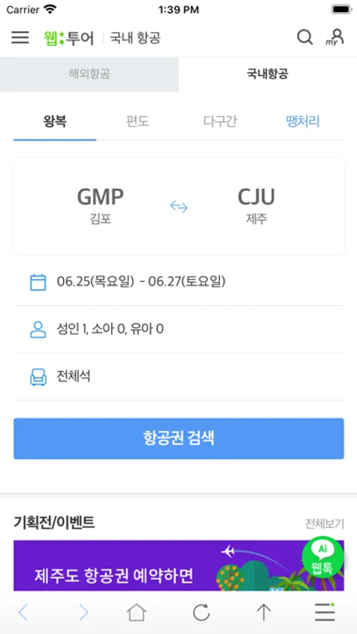 - 제주도 항공권 실시간 할인 요금 및 좌석 조회