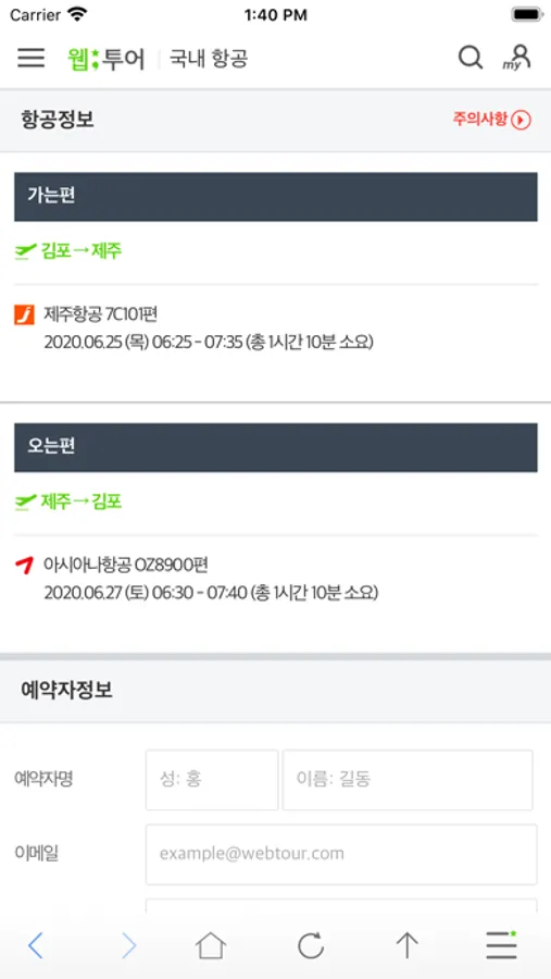 대한항공, 아시아나, 진에어, 제주항공, 이스타항공, 티웨이항공, 에어서울,에어부산, 하이에어, 플라이강원, 에어로케이 실시간 예약