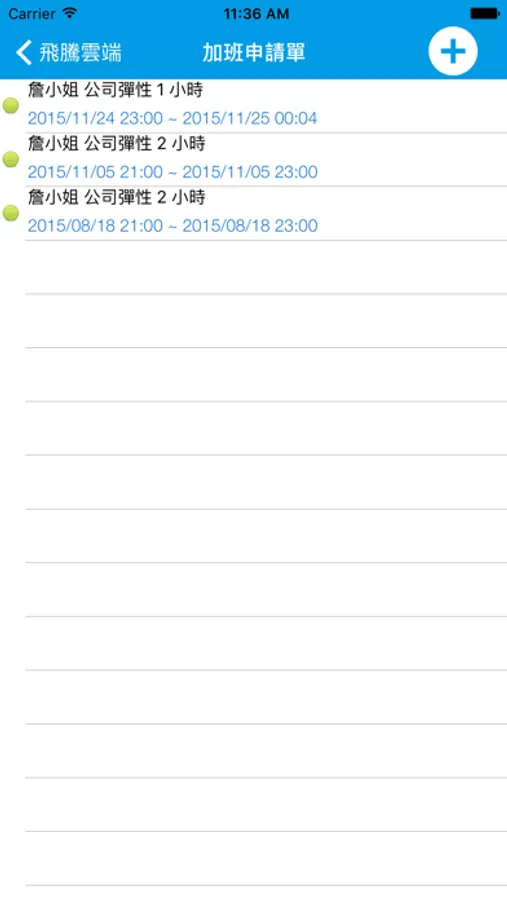 3. 個人請假加班查詢:查閱自己申請過的請假單、加班單與各單據之簽核狀況。