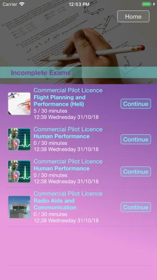- Save exams you haven’t got time to finish, letting you return to them at your leisure