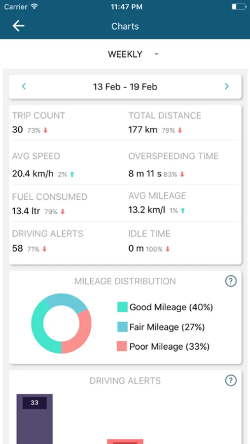 Get weekly trend charts to see how your driving is improving week on week. A consolidated Safe driving score and its weekly trend encourages you to become a safer driver.