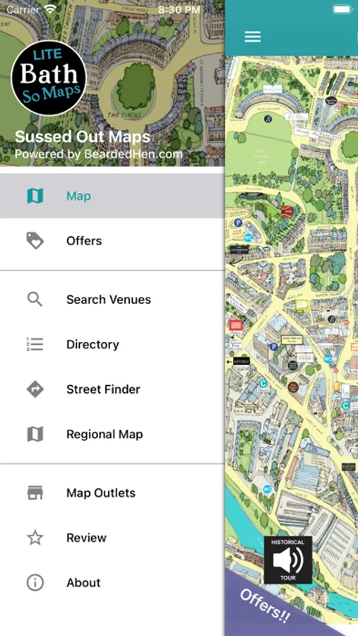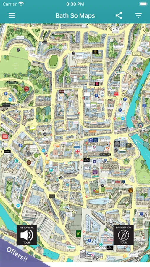 Bath Sussed Out is a beautiful hand-drawn tourist map of the centre of Bath, showing visitors all the Museums, major attractions and many shops, restaurants and cafes, as well as taxi ranks, car parks, cinemas and the Theatre Royal. The App is extremely easy to use and will help you to make the most of your time spent in Bath.