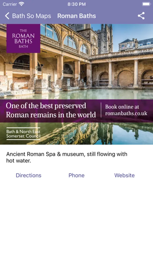 This version allows you to see how great the App is without parting with any money. If you like it and want to unlock the handy Directions (Google Map directions), Phone and Website links to the establishments, or more importantly take advantage of the offers we've negotiated with local stores and attractions like The Roman Bath, you can install our paid-for version of "Bath Sussed Out" app via iTunes https://itunes.apple.com/us/app/bath-sussed-out/id1065496590?ls=1&mt=8 now.