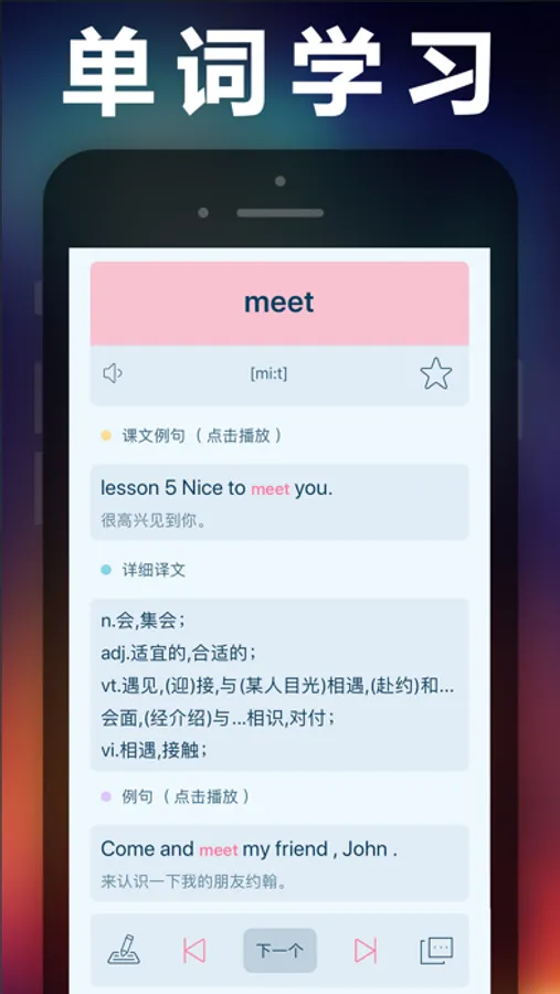 2、课文例句同步,同步播放