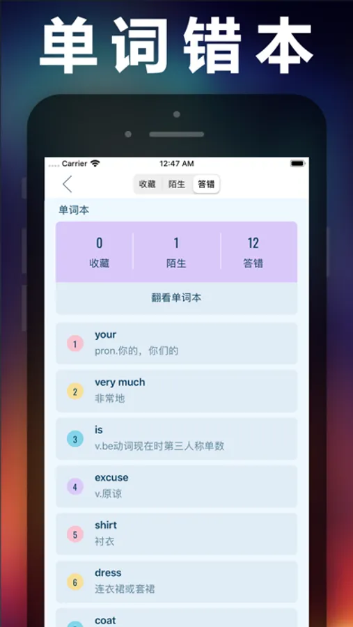 5、单词本纪录错误单词