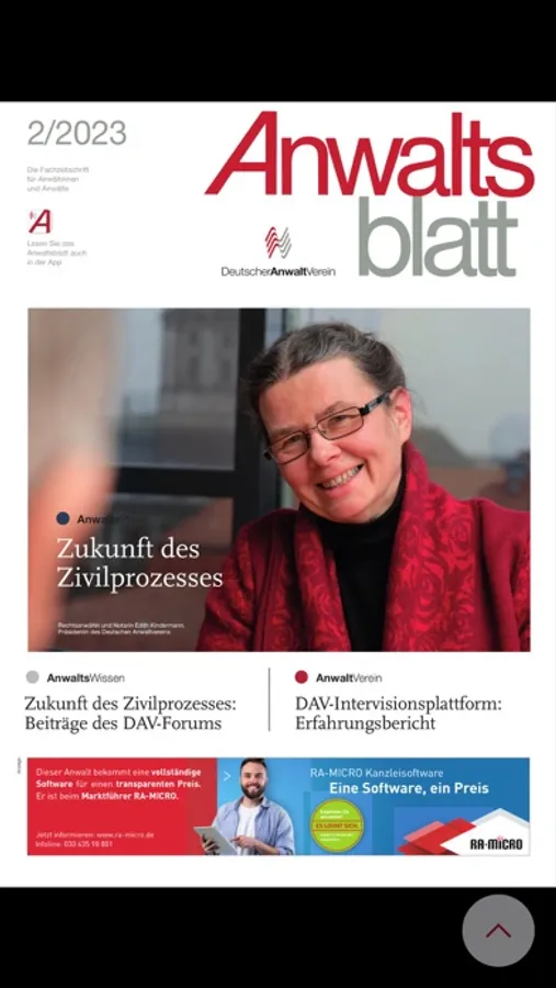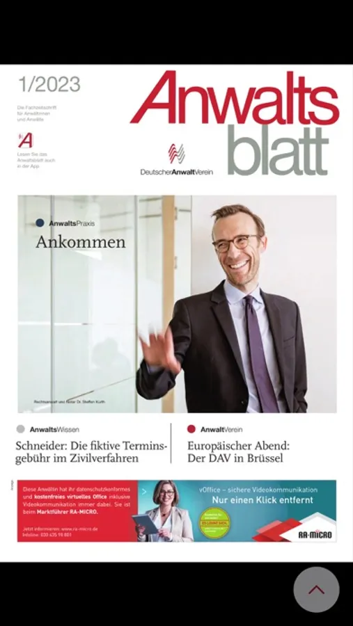 Das Anwaltsblatt ist das offizielle Organ des Deutschen Anwaltvereins. Anwälte informieren Anwälte über aktuelle Entwicklungen in allen Rechtsgebieten. Schwerpunkte sind Anwaltsrecht, Anwaltshaftung, Anwaltsvergütung und